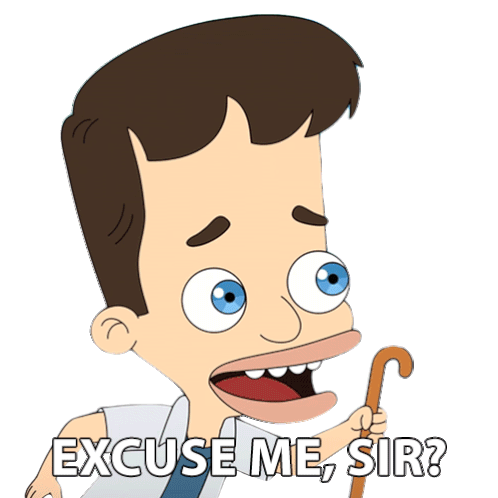 Nick Birch from Big Mouth looks surprised, asking 'Excuse me, sir?' with wide, questioning eyes.
