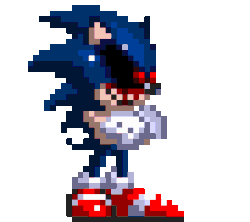 a pixel art of a sonic the hedgehog with red eyes and red shoes