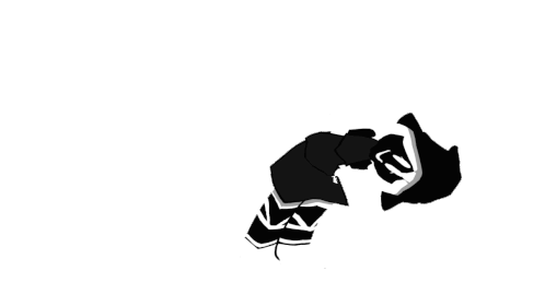 Stylized black and white drawing of a character's legs and feet, representing Exosphere Exospheric Corruption from FNF.