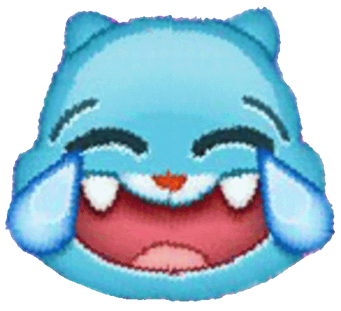 a blue cat with its mouth open and tears coming out of its eyes