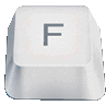 A finger presses down on a white keyboard key labeled 'F', which then bounces back up.