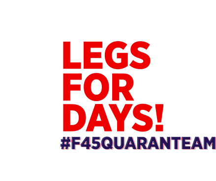 An F45 Dbayeh sticker featuring the motivational phrase 'LEGS FOR DAYS!' and the hashtag #F45QUARANTEAM, perfect for workout enthusiasts.