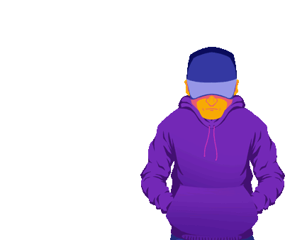 Fabio Fabiobrazza in a pixel art animation, a man in a purple hoodie and blue cap, looking up with a slight smile.