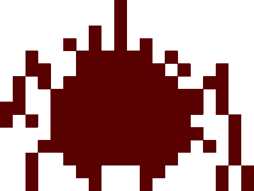 A pixelated monster from Faith The Unholy Trinity, featuring glowing red eyes and a menacing, sharp-toothed mouth.