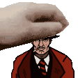 Frank Matches Malone, the character from Fallen Aces, is depicted in pixel art, coolly smoking a cigarette while wearing a sharp suit and tie.