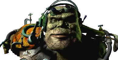 A pixelated animated sticker of Killian from Classic Fallout, featuring his iconic talking head animation.