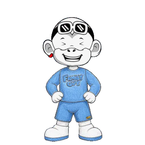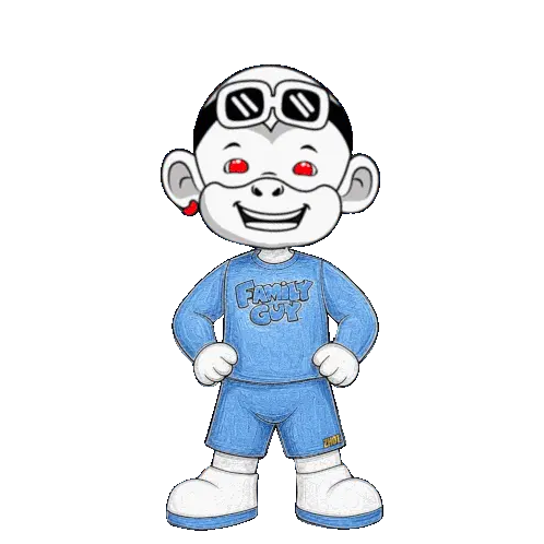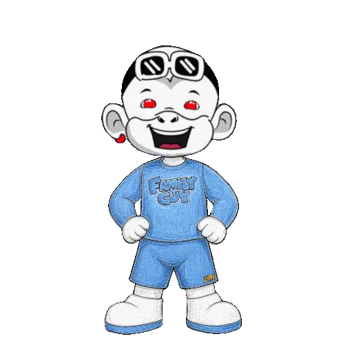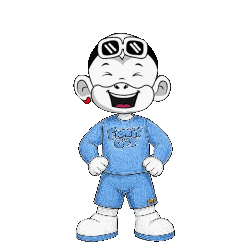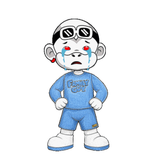 a cartoon character is crying and wearing a blue family guy shirt