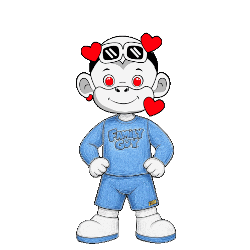 a drawing of a monkey wearing sunglasses and a family guy shirt