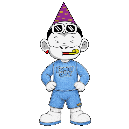 a cartoon character wearing a family guy shirt and a party hat