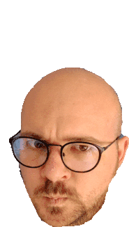 A sticker featuring Faroclaudio, a bald man with glasses and a beard, looking directly at the camera.