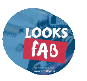 Circular sticker promoting "LOOKS fAB" fashion, with a call to action to visit artistryc.in for Indian fashion.