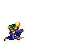 Blue Mary from Fatal Fury and King of Fighters executes a dynamic fighting game move, sliding across the ground and recovering.