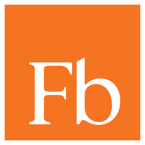An animated sticker featuring the 'Fb' logo in white on a vibrant orange square, representing Furniturebazaar.