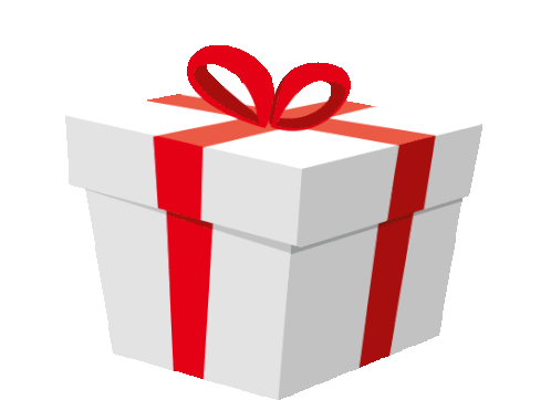 An animated sticker featuring Felinia's white gift box with a red ribbon, shown opening to reveal a light blue interior.