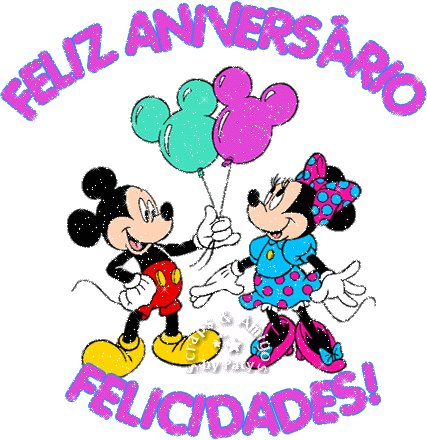 Mickey Mouse and Minnie Mouse celebrate with 'Feliz Aniversario Parabens,' wishing a Happy Birthday or Anniversary.