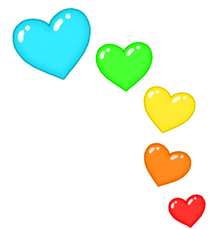 Vibrant animated hearts in blue, green, yellow, orange, and red, floating upwards, perfect for a 'Feliz Aniversário' message.