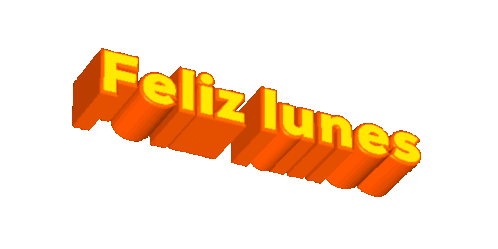An animated sticker featuring the Spanish phrase 'Feliz lunes' (Happy Monday) in a vibrant 3D orange and yellow design.