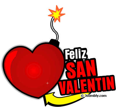A vibrant red heart shaped like a bomb with a lit fuse, wishing 'Feliz San Valentin' for a happy Valentine's Day.