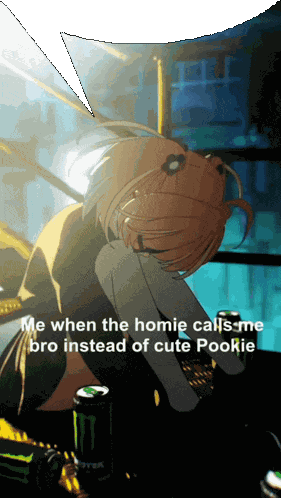 An anime-style character reacts sadly when called 'bro' instead of 'cute Pookie', expressing a relatable desire for endearment.