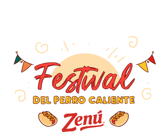 Animated sticker for the Zenú Hot Dog Festival, featuring festive banners and hot dog illustrations.
