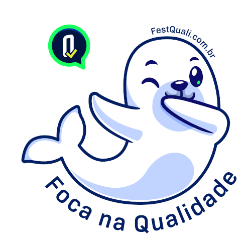 a sticker with a seal and the words foca na qualidade