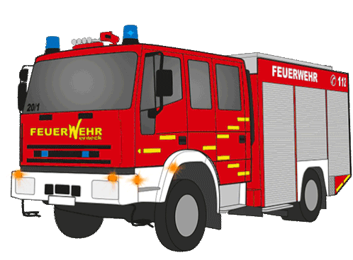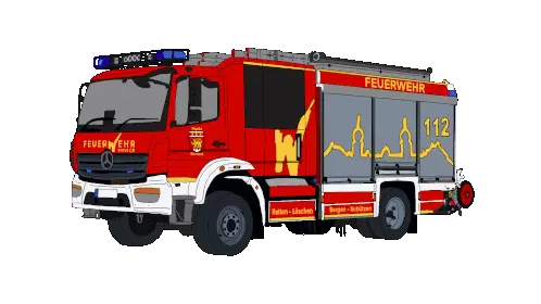 a red fire truck with feuerwehr on the side