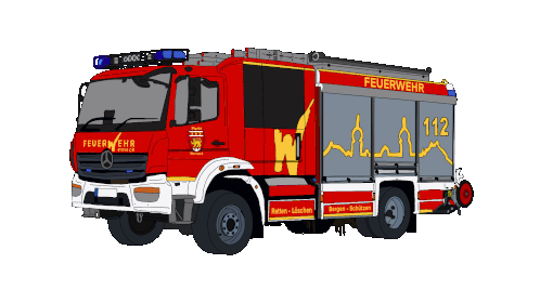 a drawing of a red feuerwehr truck with the number 112 on the side