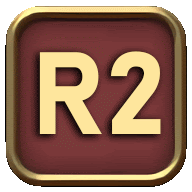 a red square with the letter r2 in gold