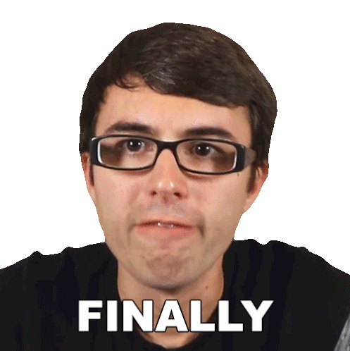 Steve Terreberry, wearing glasses and a black shirt, reacts with an open mouth as the word 'FINALLY' appears.