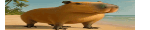 Animated sticker of Fındık Patapim Slox, a cute cartoon capybara, standing and blinking on a sandy background.