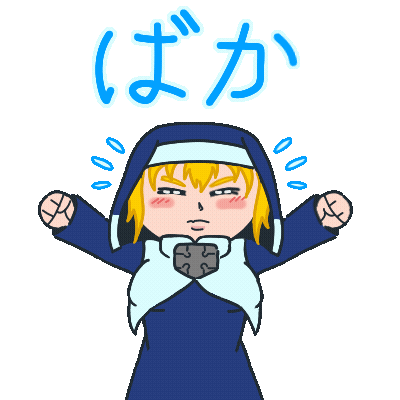 Fire Force's Iris, the anime nun, shouts 'Baka' (idiot) with a blush, expressing frustration or playful anger.