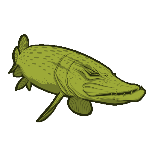 A striking green pike fish with sharp teeth, ready for the catch. Ideal for fishing and nature lovers.