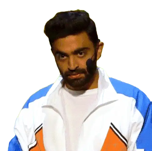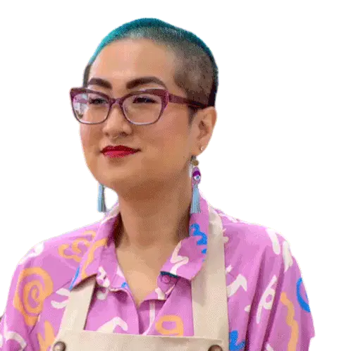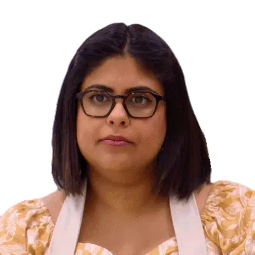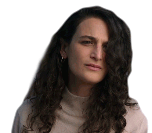 Emma (Jenny Slate) looks confused and thoughtful, touching her face and chin as if pondering a question.