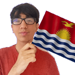 a man wearing glasses and a red shirt holds a flag