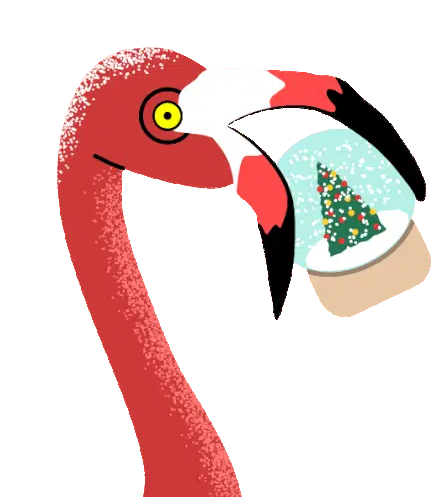 A woman holds up a pink flamingo toy, flaunting it with a stylish pose, referencing Barb And Star Go To Vista Del Mar.