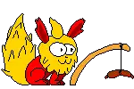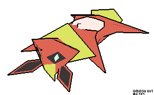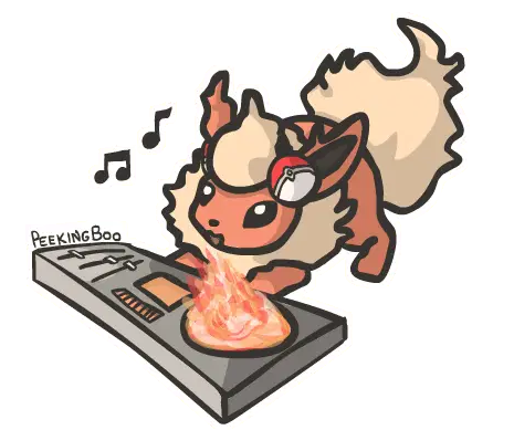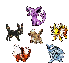 A vibrant pixel art sticker featuring the Pokémon Flareon, with red and yellow hues and sharp geometric shapes.