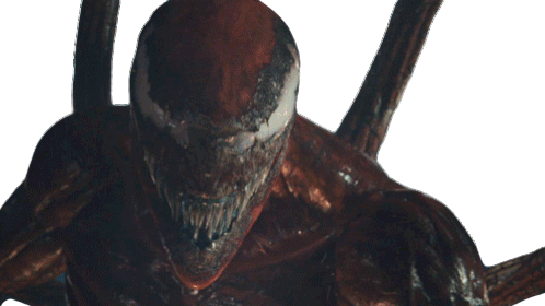 Carnage from Venom: Let There Be Carnage, with his menacing fangs and long tongue flicking out.