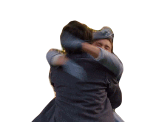 Florence Pugh as Amy March shares a warm, tight hug, expressing joy and affection in this sweet moment.