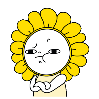 An animated sticker of a cute, grumpy sunflower character with arms crossed, showing an annoyed expression.