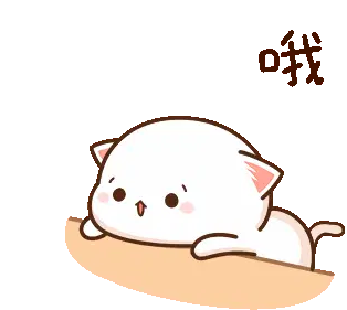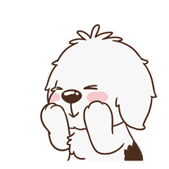 A cute, fluffy white cartoon dog-like creature blushes with pink cheeks, smiling happily as pink hearts float around it.