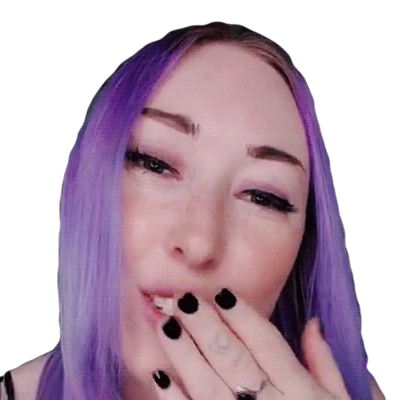 Ashni with purple hair blows a flying kiss, then smiles sweetly. A lovely gesture of affection.