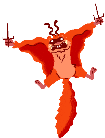 Juan Billy, the flying squirrel ninja, strikes a dynamic pose, ready for action with his sai weapons.