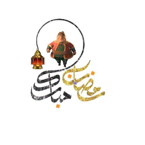 Fananees character celebrates Ramadan with a glowing lantern and beautiful Arabic calligraphy wishing 'Ramadan Mubarak'.