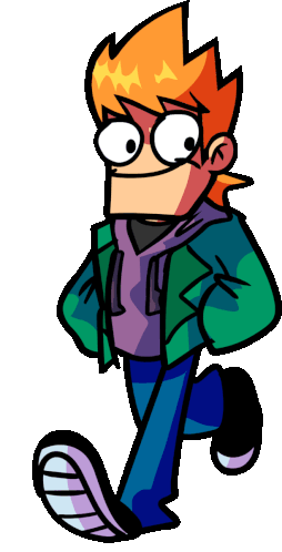 Fnf Challenge Edd Matt walks confidently with a smile, hands in pockets, in this vibrant animated sticker.