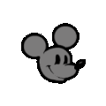 A pixelated grey Mickey Mouse head from FNF, spinning dynamically as an animated sticker.