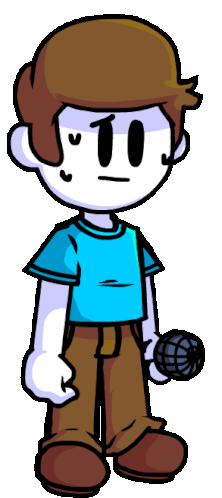 Fnf Nonsense, the cartoon character, stands with a microphone, looking slightly nervous and sweating.