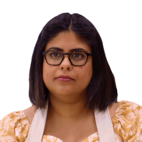 Zoya from The Great Canadian Baking Show, intensely focused and attentive, with her eyes on the prize.