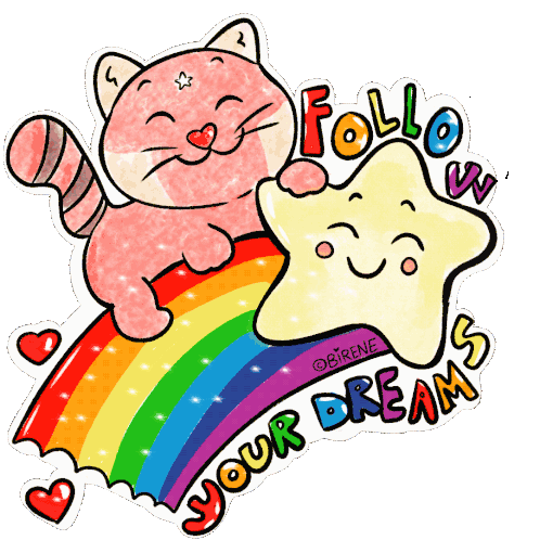 a sticker that says follow your dreams with a pink cat and a yellow star