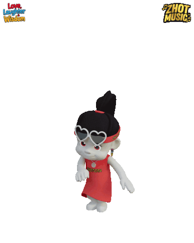 a cartoon of a girl wearing heart shaped sunglasses with the words love laughter wisdom below her