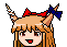 An animated pixel art sticker of Touhou Project's Suika Ibuki by Fomufan564, featuring her iconic yukkuri-style mouth and blinking eyes.